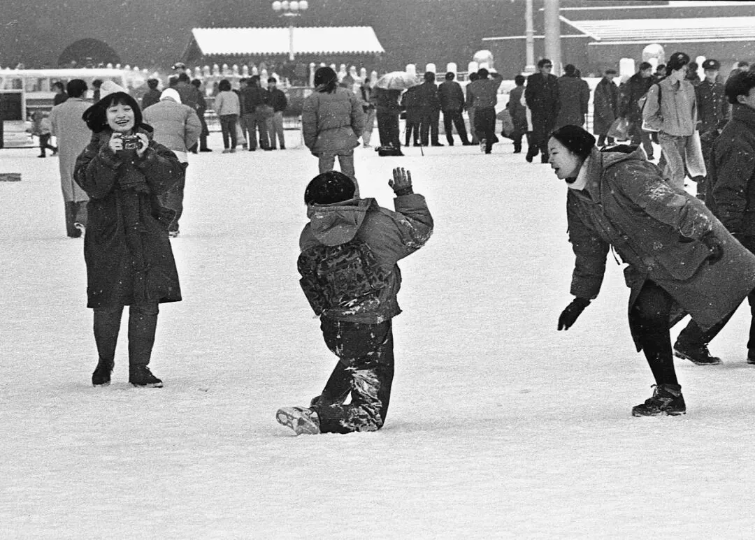 1993年,天安门广场上玩耍的姑娘们。郭建良摄
