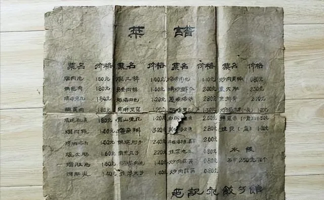 这张纸糊的菜单,摊开能看半天,字是毛笔蘸墨写出来,角上黄斑、中心一小块破洞,老菜单最直观,肉丝面一碗一毛多,炒肉片三毛,素菜五分钱,讲价没有,讲究分量,一黑板写完,贴墙上只管看,奶奶当年指着菜单念,八块钱能买半瓶茅台,那已算天价,老菜名透着朴实,什么芹菜炒肉、韭菜包子,现在说“平价餐”,那时候可真不是啥都划算,工资才四十,点几个肉菜得咬咬牙。