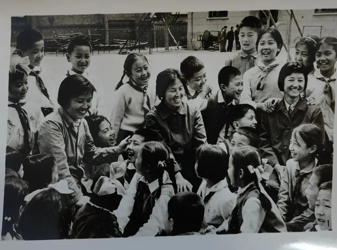 在整理旧物时发现了一组老照片。这是一组宣传照片,比较醒目的一张是在花丛中,一位年轻的女教师,几位小学生围绕在她周围,背景有两面飘扬的红旗,使得画面顿时有了动感。女教师面容娇美,齐耳短发,形象突出。小学生笑容灿然,朝气蓬勃。底部的“园丁颂”三个字醒目活泼,托起整个人物。