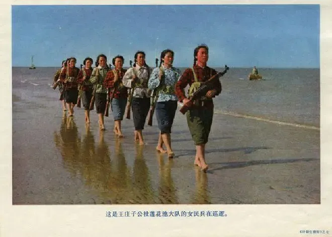 这是王庄子公社莲花池大队的女民兵在巡逻。当年是全民皆兵的年代,每一个公社都有民兵,还不少的女民兵。
