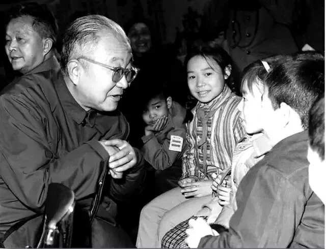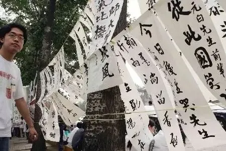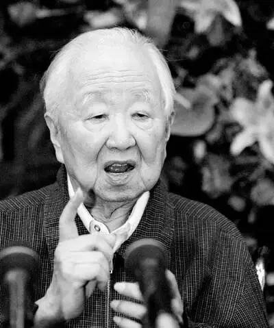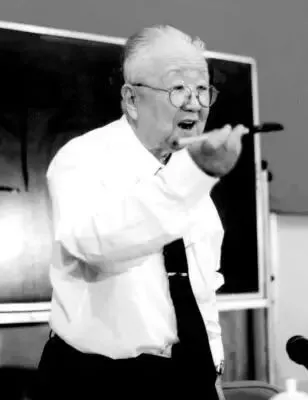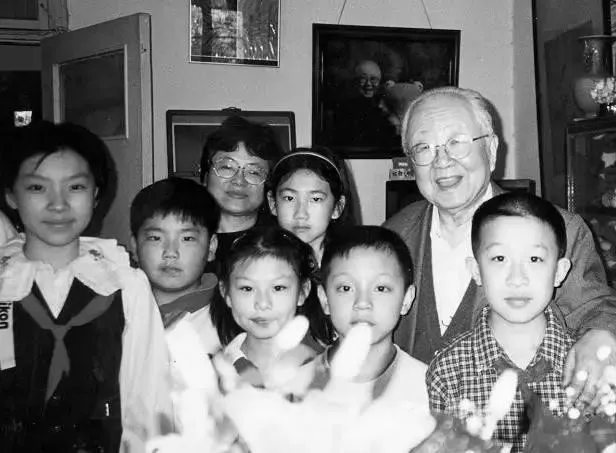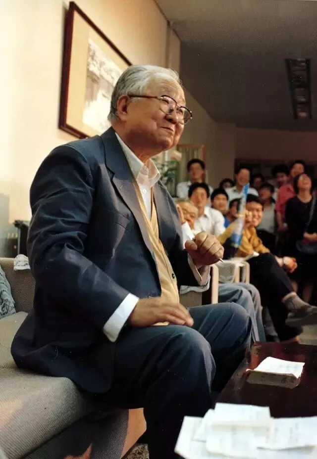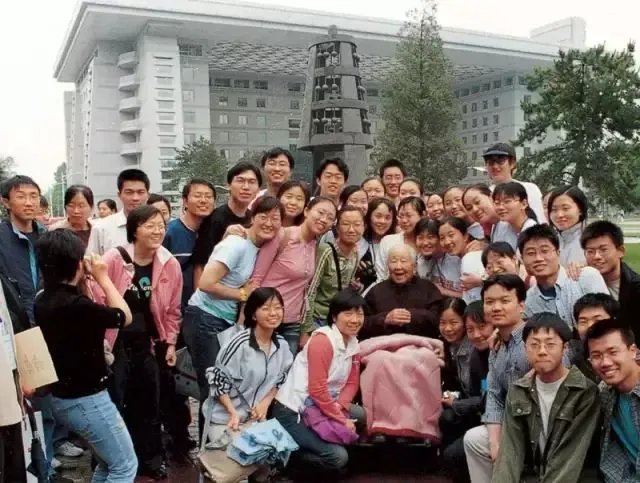 2002年,北京师范大学百年校庆时,启功先生与师生合影。