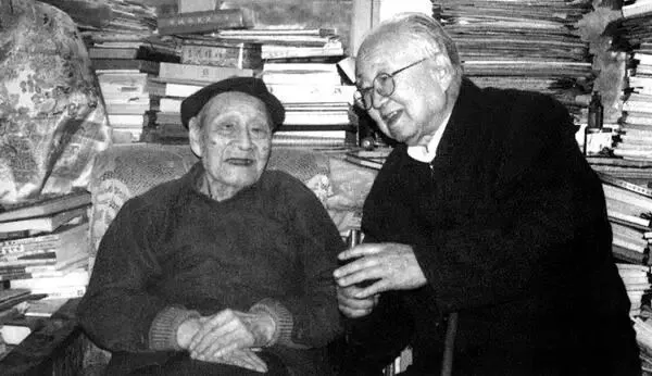20世纪60年代末,启功先生(左)和他的老师、北京师范大学校长陈垣合影。
