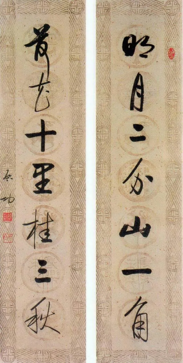 行书 七言联(明月二分山一角 荷花十里桂三秋)