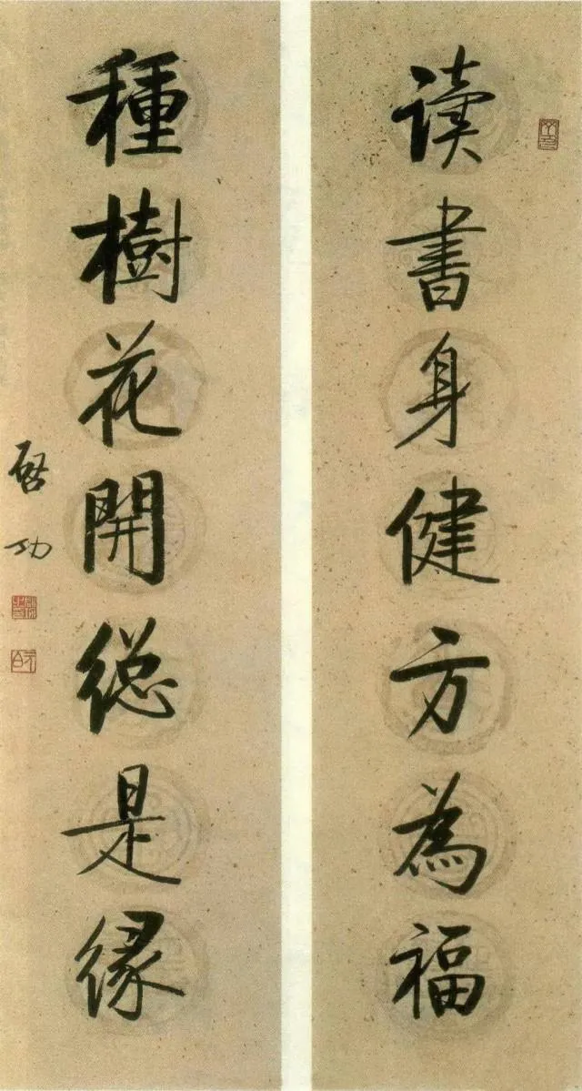 楷书 七言联(读书身健方为福 种树花开总是缘)