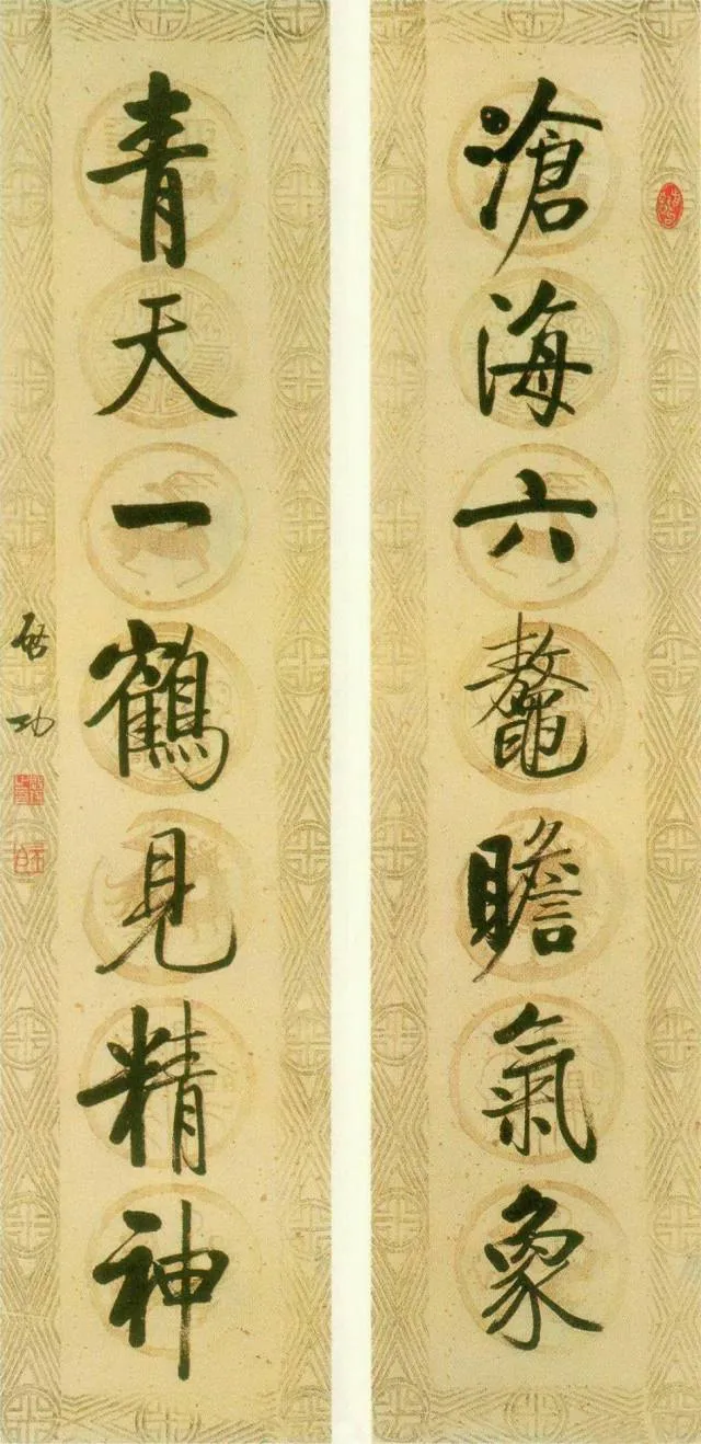 楷书 七言联(满襟和气春如海 万丈文澜月在天)