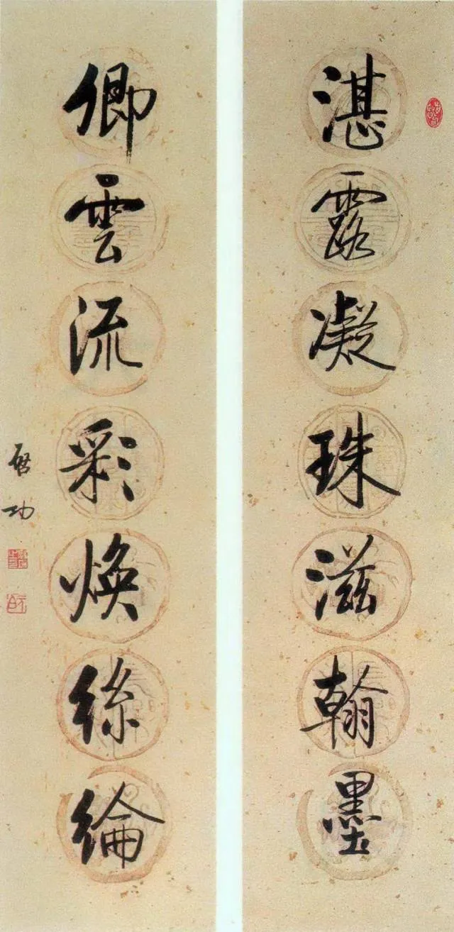 楷书 七言联(湛露凝珠滋翰墨 卿云流彩焕丝纶)