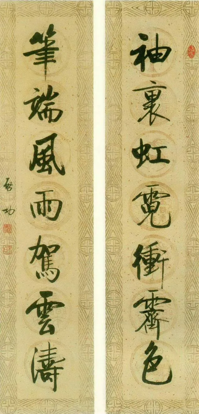 楷书 七言联(袖里虹霓冲霁色 笔端风雨驾云涛)