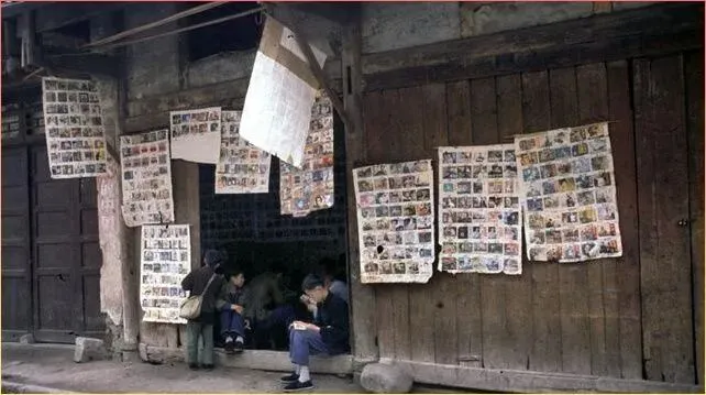 这.是当年的照.相馆吗,.还是什么摊位?墙上密密麻麻.贴满.了各种照片.,两个人坐在门口,守着.这一.方小天.地。那个年代照相是件大.事,要专门去照相馆,穿最好的衣服.,摆最.正的姿势。这些贴在墙.上的照片,每一张背后都是一个.家庭的故事,一段值.得纪念的时光。
