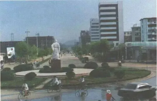 照片里有热闹的上饶火车站、陆羽雕像、中心广场,还有婺源古道、鄣山飞瀑,以及上饶影剧院、上饶体育馆。