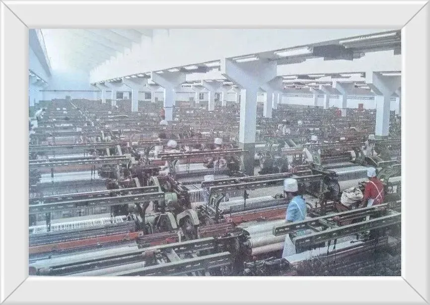 车间里,女工们忙个不停,远处只能看见一个个白色的帽子在挪动,一个人要看好几台机器,根本停不下来,十分辛苦。