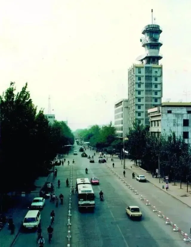 22、80年代时的黄河中路,最高的建筑是当时三门峡的地标—微波接收塔