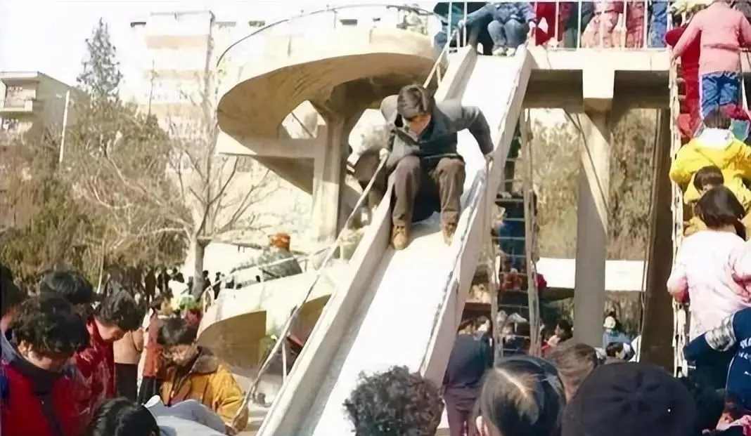 24、90年代人民公园里排队玩滑梯的孩子们