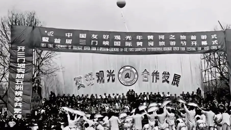28、90年代初时三门峡首届国际黄河旅游节的开幕仪式的现场照