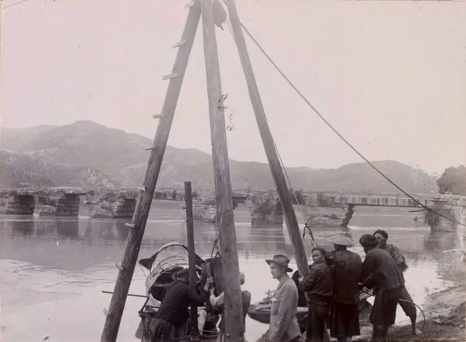 这是1900年漳州人劳作的真实写照。他们靠水吃水,与九龙江相依为命,造船、行船、捕鱼、修桥,每一份劳作,都饱含着对生活的热爱。三角支架下的汗水,滴落在九龙江的江水里,与江水融为一体,成为了这座城市最鲜活的注脚。他们或许不知道,自己的身影会被定格在照片里,成为百年后我们回望漳州的重要凭证。