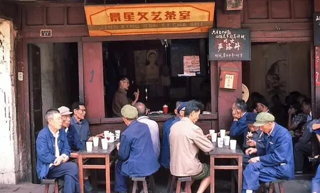 照片里的每一处场景,都是老昆明人的记忆:顺城街沿着老城墙而建,临街多为木质老屋,综合市场内人来人往,摊贩吆喝声不断,门口的帆布摊棚下,有现煮现卖的米线香;景星街那时还未成为花鸟市场,老茶馆遍布,茶客们捧着白瓷缸、嗑着瓜子闲谈,偶尔能听到说书人的唱腔,时光悠长。