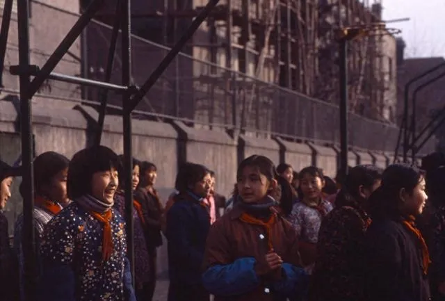 一群系着红领巾的孩子们,聚在操场边,有的咧嘴笑,有的侧头舒服自由,花棉袄成一片,围着讲笑话的同学转圈,课间十分钟全靠自己找乐,女孩子拉着手,男生推着打闹,就是那样纯稚中透着胆大,哪像现在课业重成一座山。