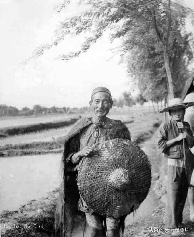身披蓑衣的稻田农夫