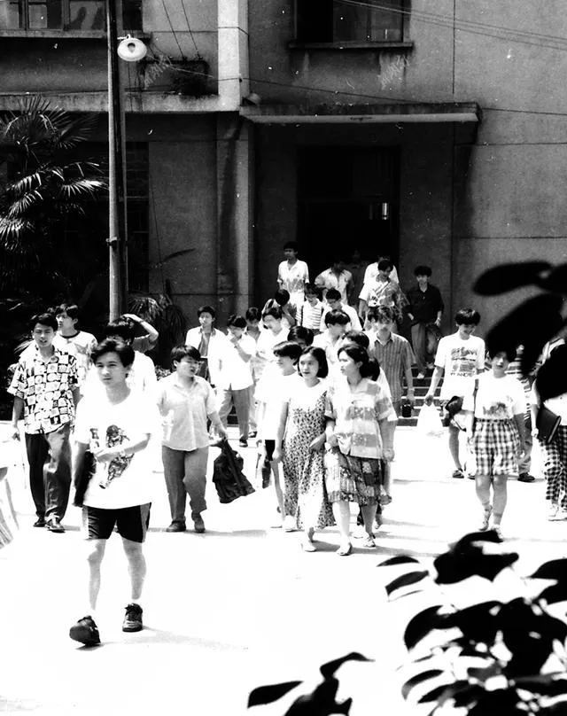 考试结束,教室外“哗”一下散出一大拨人,衣服样式五花八门,有穿格子裙,有戴眼镜,那种一下子从“压力锅”解放出来的状态——从楼里涌出来,脸上全是轻松又略带懵的表情,谁都在低头嘀咕试题,有的互相拉扯,有的直接奔厕所,不分年代,这几分钟永远是最放松也是最热闹。