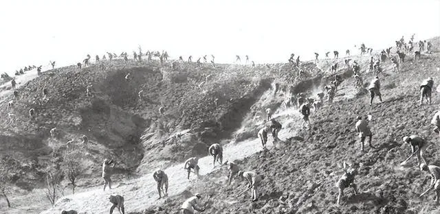 再看这个满坡都是人的阵仗,一把锄头一条汉子,连绵起伏的丘陵一块接一块地翻,动作不快不慢,后头人在喊“一二三”带着号子,烈日下挥汗如雨,也没人掉队偷懒,这样大的规模光靠人力硬是把石头地翻成了良田,现在有了机械,爷爷每回说起心里都还是服气,以前人少工具破,靠的就是一口气一股子狠劲。