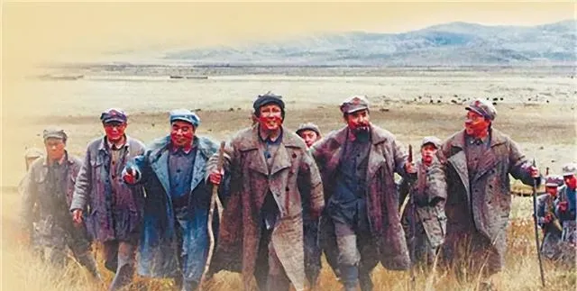 看这一队人,领头骑马,其余徒步紧跟,个个布帽羊肚手巾围脖,帽檐下全是风沙吹出的褶,身上的衣褂早看不出原来的底色,有的拄根木棍,一路走走歇歇,大家伙的步子都齐着往前头看,爸爸道,那是往希望走,路再苦心不散,这队伍就是活生生的信念拉绳。
