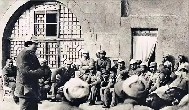 照片里人全挤在窑洞门口,一个站着讲,其余坐着听,后头窗格里透出隐隐的光,讲课的手势挥来挥去,台下有人托腮打盹,有人直愣愣盯着听,每个人身上的褂子都一个模子刻出来,补丁密的都能连成地图,那些天黑后大家最喜欢窝一块听人讲政策讲故事,安全感就是这样来的,没灯也敞亮。