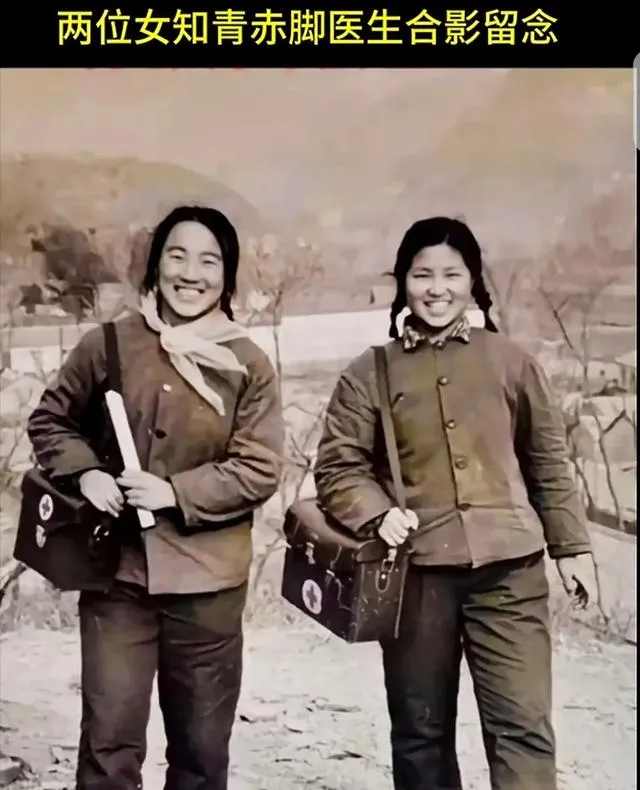 两位背着红十字药箱的女赤脚医生,笑得像迎面吹来的风,那个年代村里没有大医院,全靠她们走村串户,看病送药,左手一根温度计,右手一摞小药包,谁家娃感冒发烧,听见敲门声就知道是她们来了,奶奶那时说:“不管多晚,人家都得赶过来”,药箱里的味道一闻就知道是什么,解热片、红药水,老百姓心里踏实,赤脚医生在村里就是半个主心骨,现在农村有卫生室了,这种老药箱倒成了回忆。