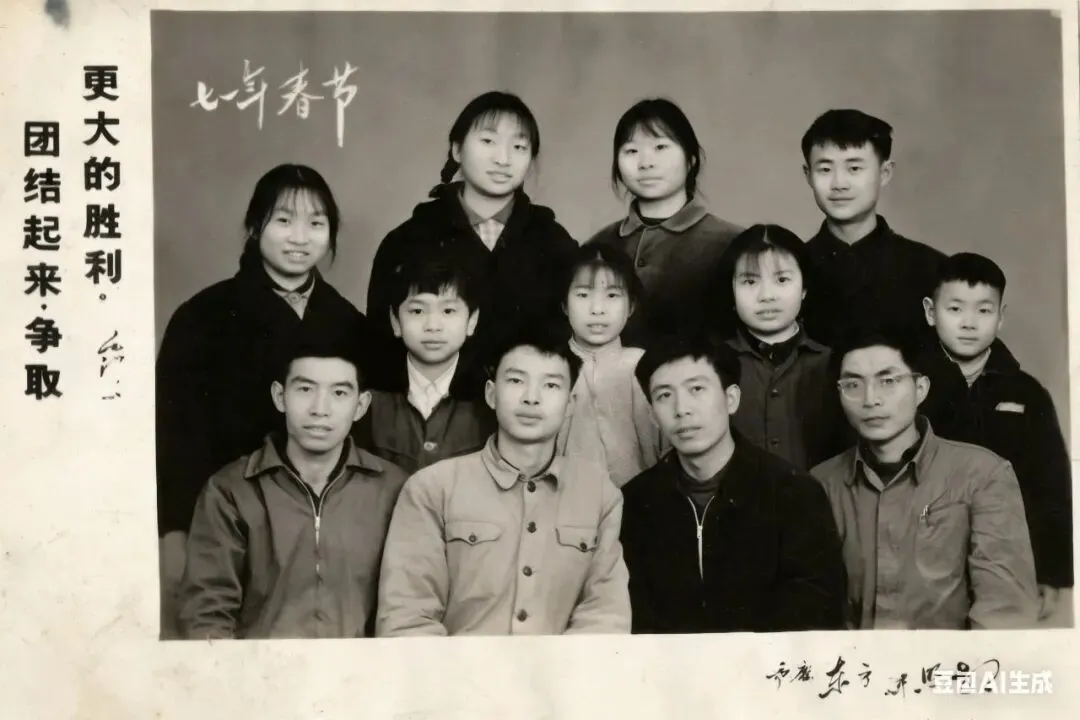 没想到,惊喜接踵而至。那些带着时代印记的朴素服饰,从模糊的色块变得纹理清晰,粗布的质感、简单的款式,仿佛瞬间回到了那个淳朴的年代;眉眼间的真挚笑意,从朦胧的轮廓中挣脱出来,每一个上扬的嘴角、每一道真诚的纹路,都被温柔还原。岁月的磨损被悄然抚平,一家人的温情、那个年代的纯粹与热烈,依旧清晰可触,仿佛只是一眨眼,我又回到了那个春节,和兄弟姐妹围坐在一起,听大哥唱英语歌曲,学三哥教我们流行歌曲,感受着满屋的欢声笑语。