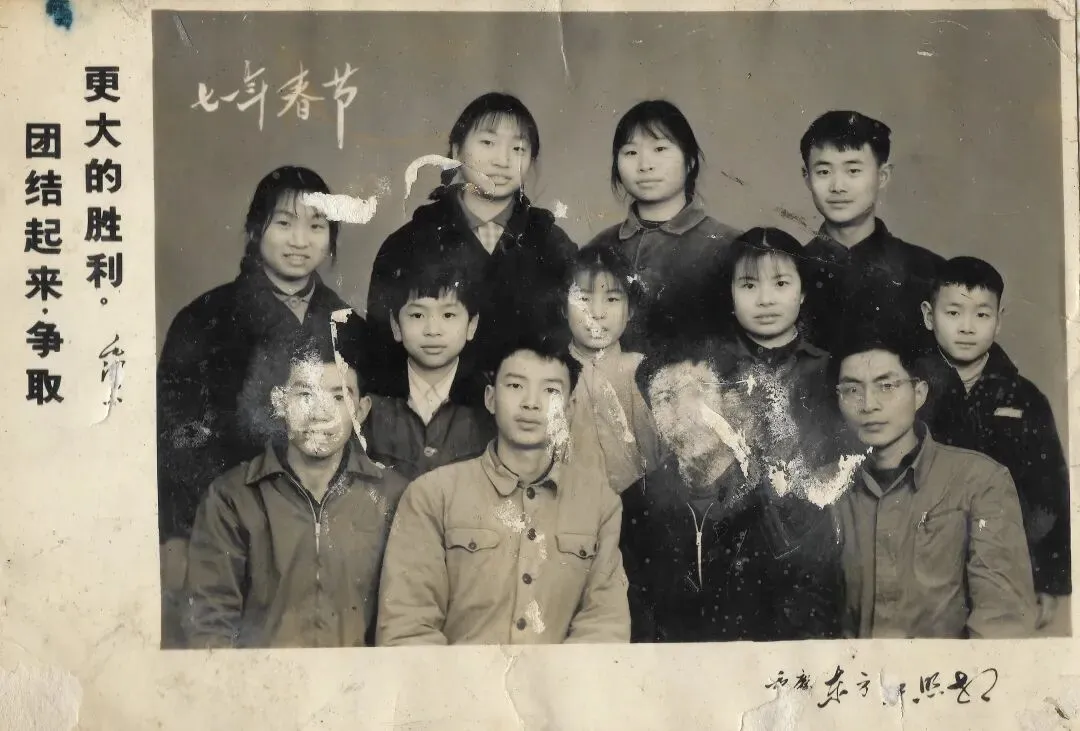 这张照片,是1971年春节的珍贵合影,也是我心底最柔软的记忆。那是亲、堂、表兄弟姊妹全员相聚的时刻,时代感浓厚,亲情浓郁。在那个物资匮乏、相聚不易的年代,一张合影更是凝聚了满满的期待与情谊。只是历经岁月流转,照片早已磨损严重,边角卷翘,细节模糊。看着照片里年轻的面孔,我满心惋惜,却又不甘心让这段回忆就此褪色,于是试着用豆包进行修复。