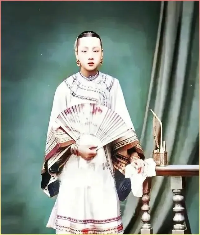 瞧这位女子,身着精.美的刺绣长袍.,手持折扇,.站姿端庄优雅。她的装束和气质一看就是大户人家的千金小姐,据说这样的照.片在当时可是稀罕.物,普通人家根.本拍不起。那会儿照.相可不像现在拿手机随.便拍,得去专门的照.相馆,摆好姿势一动不动站半天呢!