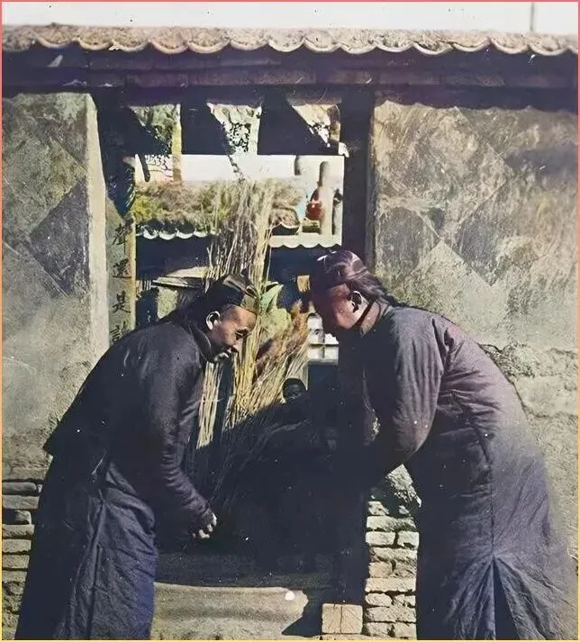 两位普通的庄稼汉,扛着农具站在田.埂上,脸.上.写满了岁月的沧桑。这才是真实的清末中.国,不是所有人都锦衣玉食,更多的是这些面朝黄土背.朝天的劳苦.大众。他们的穿着朴素到有些寒酸,但眼神.里却透.着一股子坚.韧。