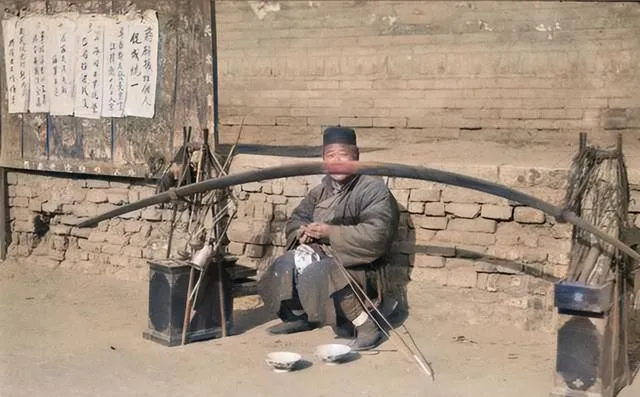 这个坐在小凳上的人,身旁摆着工具,也有几个碗口大的陶片,这就是老绵阳锔碗匠人,碎碗碎盆到了他手里,三下五除二攒好一堆铁钉,几锤子下去裂口就扣实了,妈妈说,小时候摔破个碗,怕挨骂不敢出声,等锔碗师傅过街,就大着胆子塞给他修,看着他的手法麻利利的,真叫当场解了急。