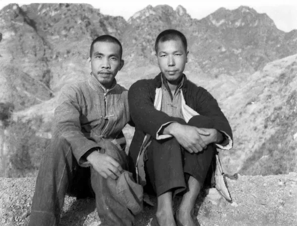 1942年。摄影记者雷烨与抗敌剧社小演员田华。沙飞/摄。