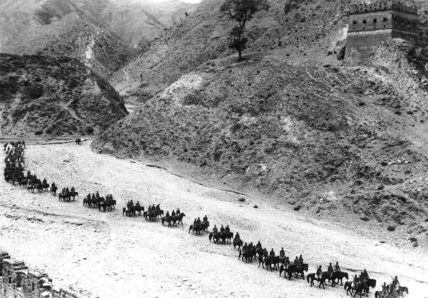 1937年,八路军铁骑冲破平型关,长驱出击。沙飞/摄。