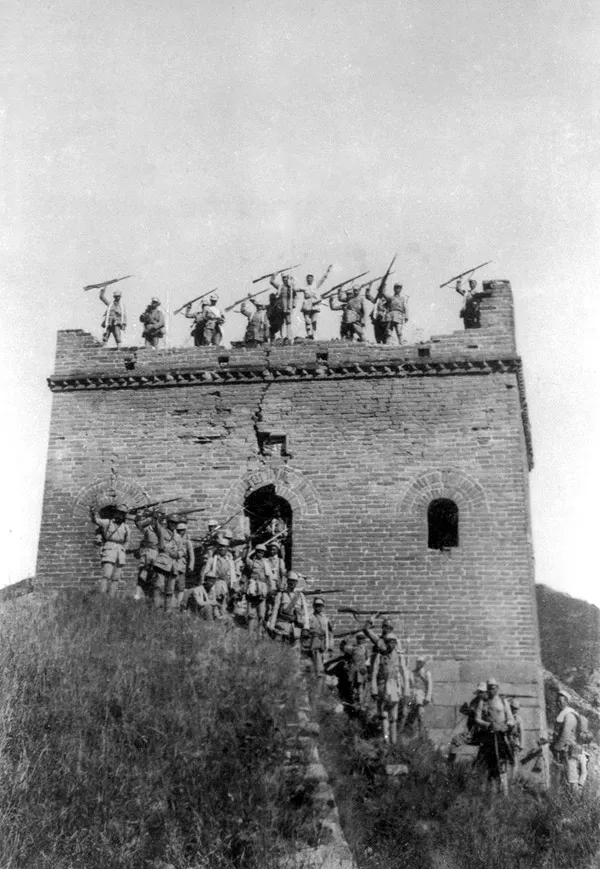 1937年秋,河北涞源浮图峪,八路军在古长城欢呼胜利。沙飞/摄。