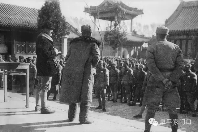 1940年9月,战后欢迎大会上,晋察冀军区一分区政治部主任罗元发向日伪俘虏讲解宽大政策。沙飞/摄。