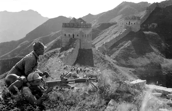 1938年,河北涞源浮图峪,八路军战斗在古长城。沙飞/摄。