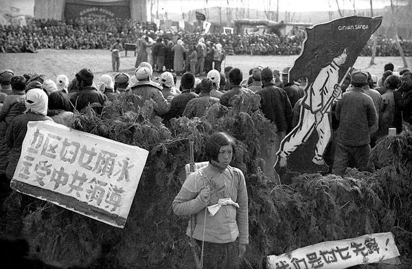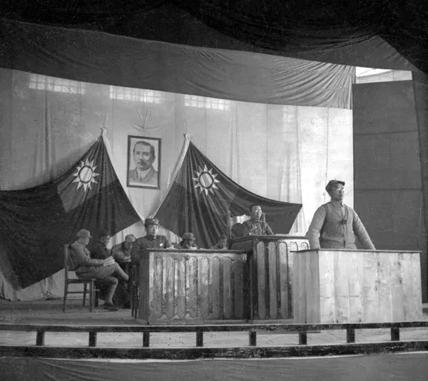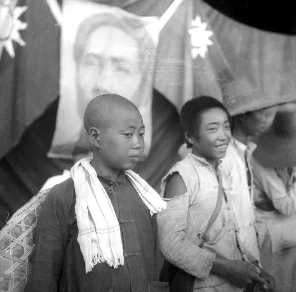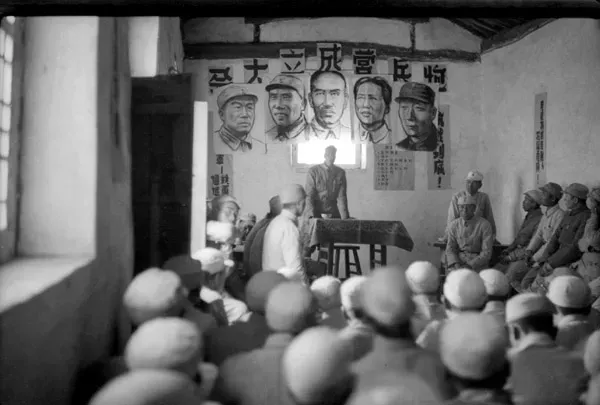 1939年8月,边区国民"精神总动员大会",中间的画像是蒋介石。沙飞/摄。