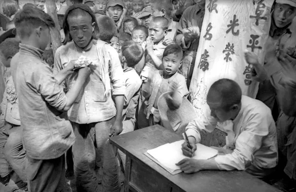 1939年6月,河北阜平县青年报名参军。沙飞/摄。