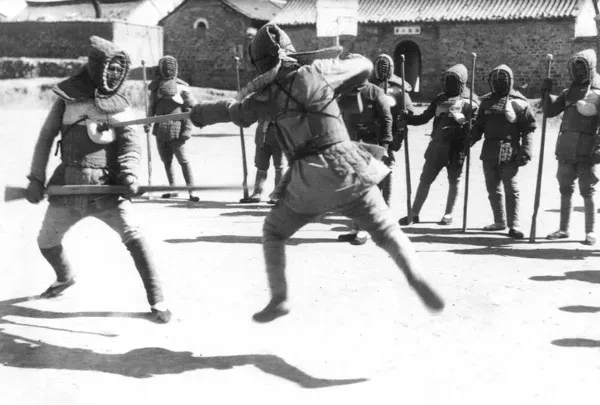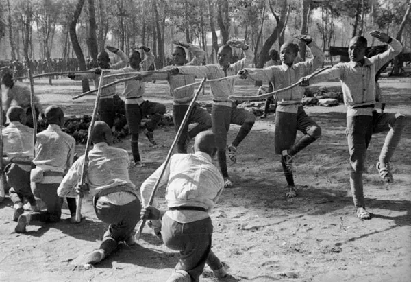 1942年,在华日人反战同盟支部成员剑术表演。沙飞/摄。