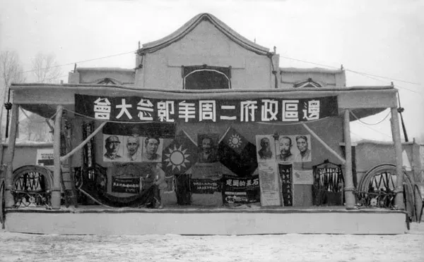 1943年1月,晋察冀边区第一届参议会主席台。沙飞/摄。
