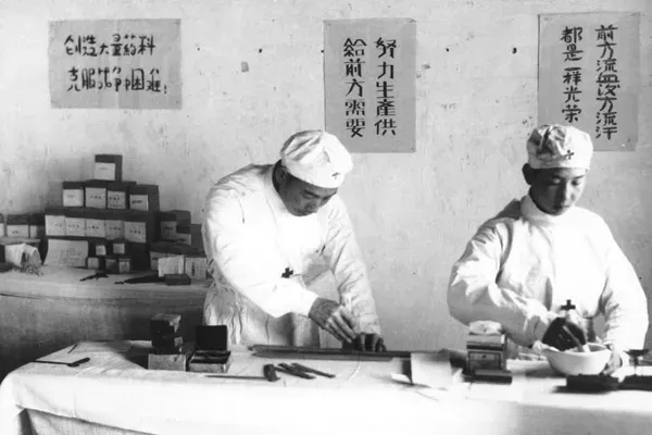 1942年2月,晋察冀军区制药厂研究室,药用植物研究。沙飞/摄。