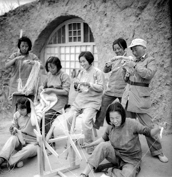 1942年,延安,妇女们在纺线。沙飞/摄。