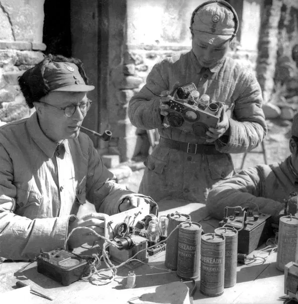 1942年,林迈可(英国人)给晋察冀军区无线电技术高级训练班讲课。沙飞/摄。