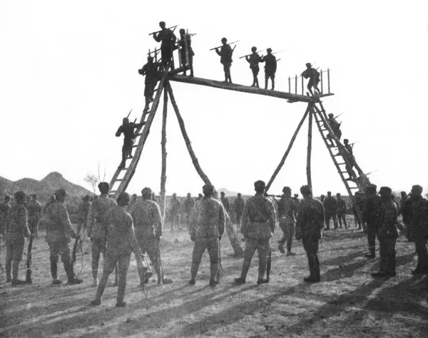 1945年,抗大二分校训练,走天桥。沙飞/摄。