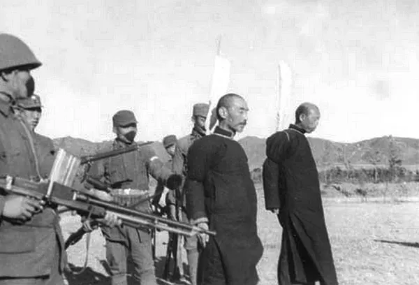 1945年,抗战胜利后,大汉奸张家口市伪市长韩广森、伪副市长崔景岚被枪毙。沙飞/摄。