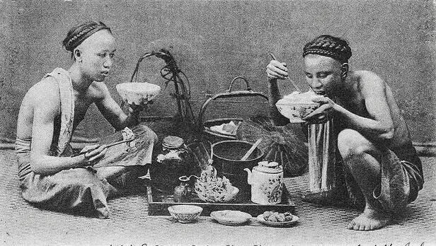 晚清时期蹲在路边吃饭的苦力