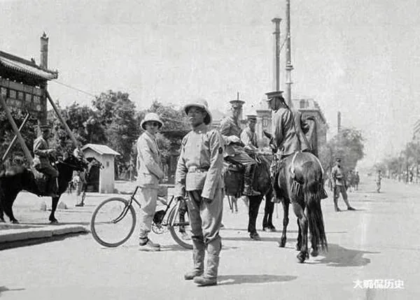 1917年北京,张勋复辟时街头的“辫子军”。