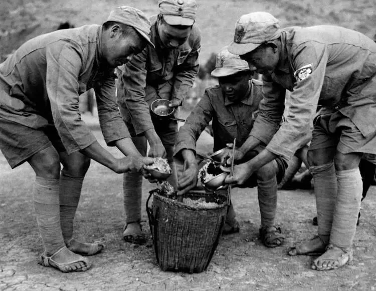 1949年,大溃败中的国军士兵,饱餐一顿是他们的幸福时光。