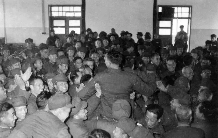 1956年,日本战犯获中国特赦后,个个欢呼雀跃,拍手大笑。