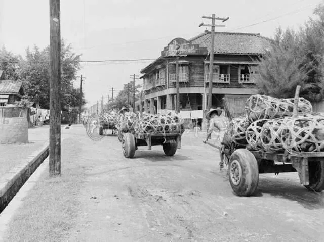 60年代台北街头,用人力车运猪仔。